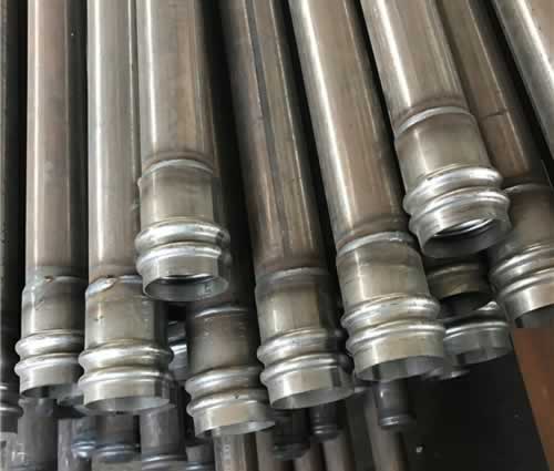 第四步:將第二根鉗壓式水蜜桃免费视频底部(有標線標示)指向已綁緊的測承插口部,保證二根管道處於同一中軸線;以確定管材頂端與劃線部位距離3mm之內。(留意:一定要查鉗壓式水蜜桃免费视频承插口端裏的"O"形密封環完好無缺並且經過潤化)。